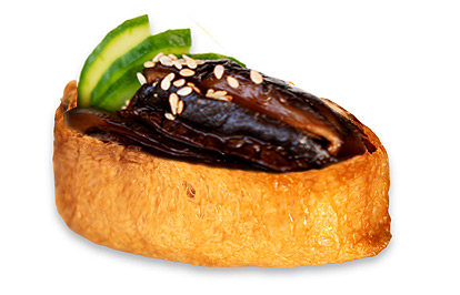 shiitake mushroom, cucumber, teriyaki, sesame, rice, inari